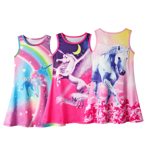 מודפס קריקטורה צבעוני חד קרן תחפושת שמלת כתפיים רך ילד שינה כותונת לילה פיג'מה קיץ מזדמנים ילדה שמלות נסיכה
